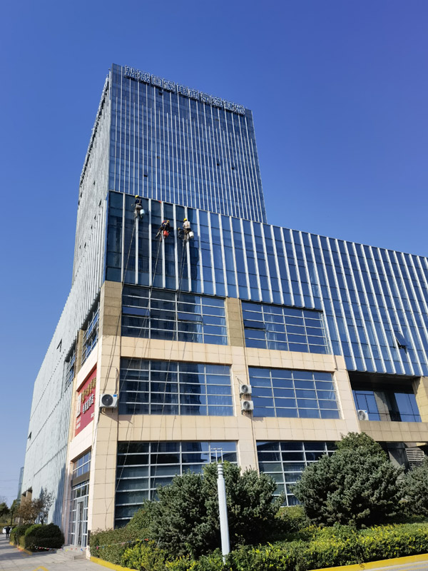 鹽城物聯(lián)大廈13000方幕墻清洗6天